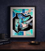 Where abstract art meets street art, this piece is among Huskee’s favorites from her collection of original artwork. This cool-toned, graffiti-style print brings style and creative energy to any space.